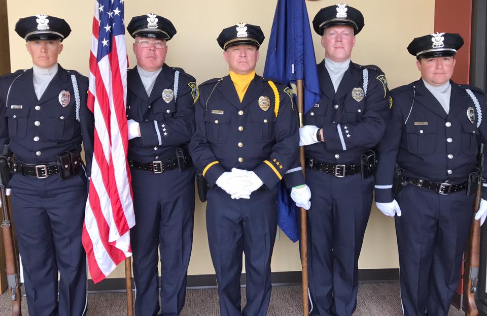 The Salina Police Department Honor Guard. L to R: D. Lemon, S. Moreland, Sgt. C. Burr, A. Meek, K. Jacobs (Salina Police Department photo)