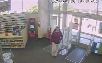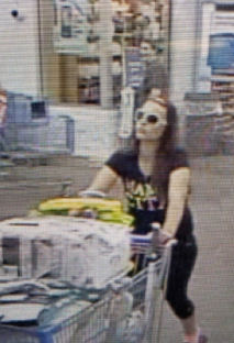 A person of interest was identified through various store videos. The person was described as a white female, late 20-early 30’s, brown shoulder-length hair, wearing glasses.