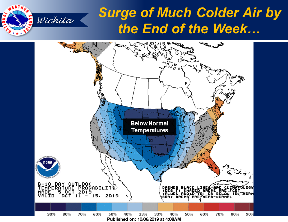 The cold front will usher-in much colder air with below normal temperatures starting Friday morning and continuing through the weekend. The first freeze of the season is possible across parts of central Kansas.