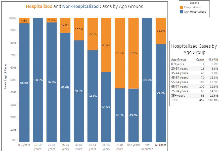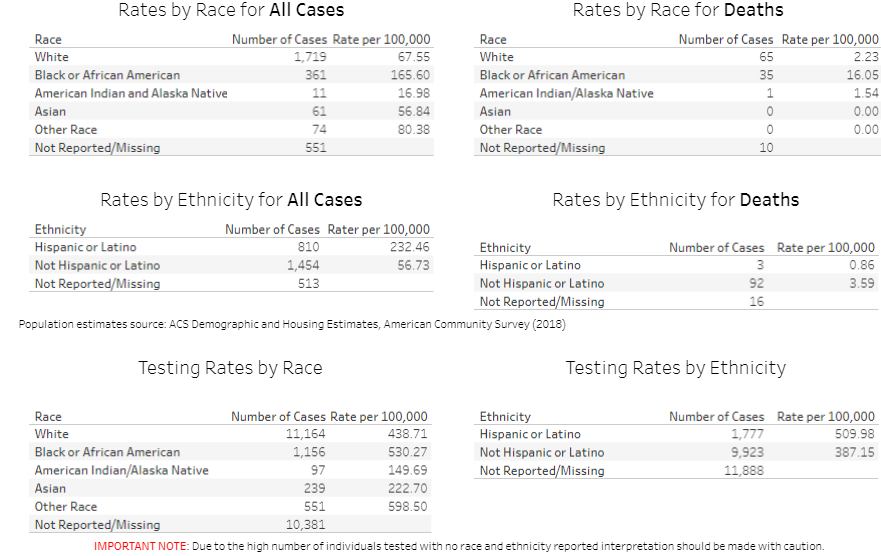 - Monday, April 20: 1,986 cases of COVID-19, 100 deaths and 16,775 people have tested negative for the disease.