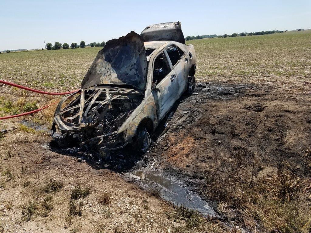 Saline County Sheriff’s deputies and Rural Fire District No. 5 respond to a vehicle fire in the 400 block of S. Gypsum Valley Rd. at 2:35 p.m. on Tuesday. The 2001 Lexus was driven off the road and in to a ditch when the vehicle became stuck. The driver then noticed smoke before the car caught fire. The car is valued at $2,000 and there are no injuries.
