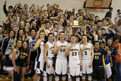 - Students celebrate with the Salina Central Boys Basketball Team.