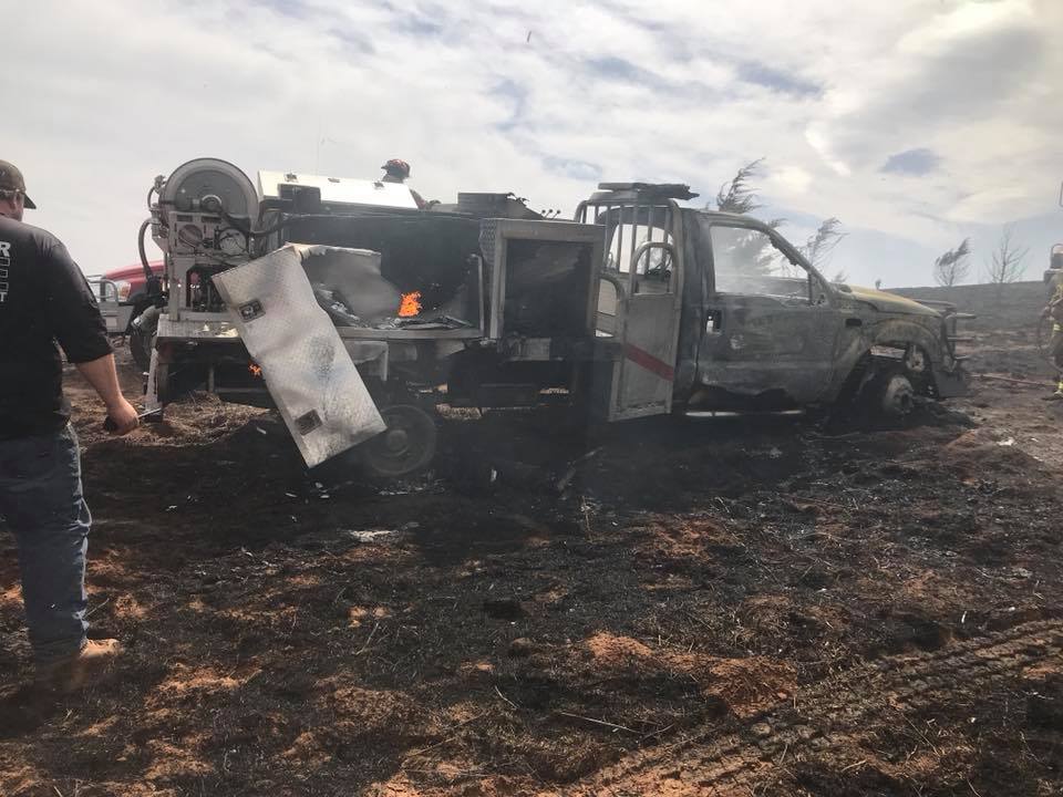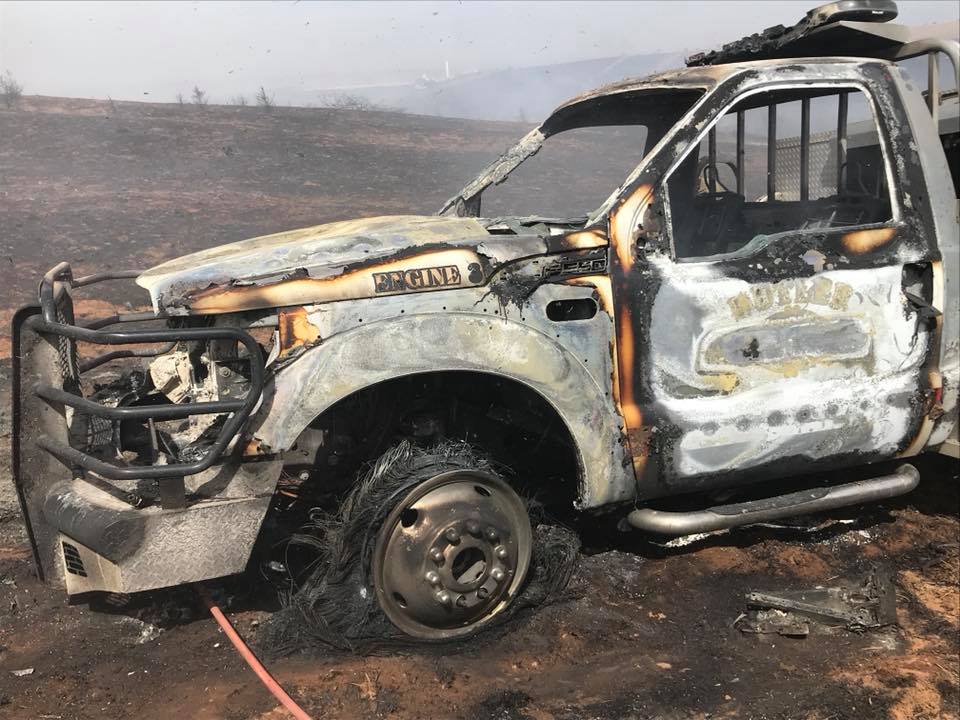 Wallace County Sheriff Larry Townsend says several structures were damaged and three firefighters were taken to a hospital with injuries after the flames reached their truck.