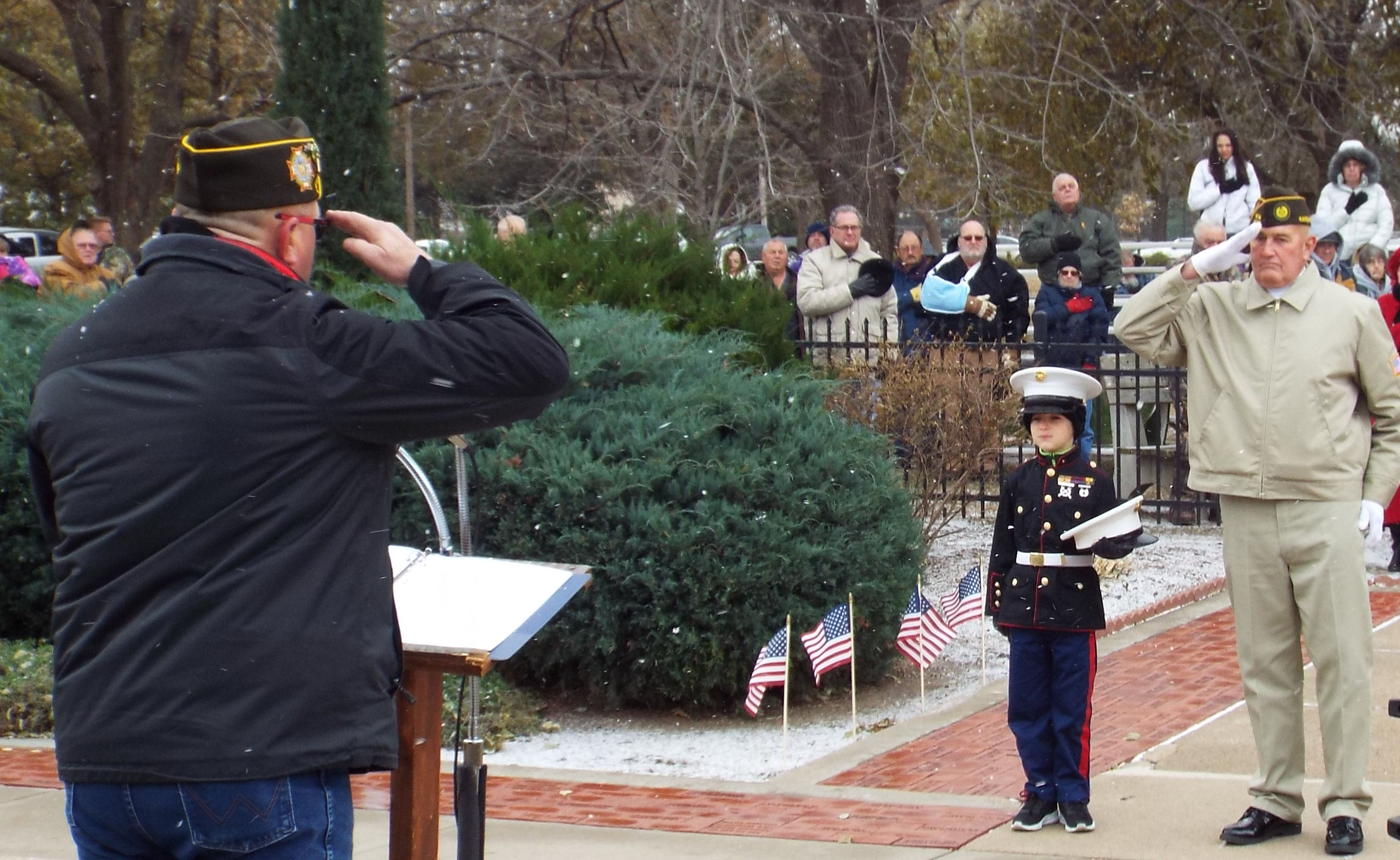 A respectful crowd braved the cold weather and gathered for Veterans Day ceremonies at the Salina / Saline County War Memorial in Sunset Park. Among those in the crowd were veterans and their family and friends, area students, and citizens simply wanting to show respect.