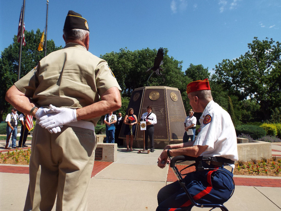 Following brief cemetery services at Gypsum Hill Cemetery and at Roselawn Cemetery, events culminated with a large gathering at the Saline County War Memorial in Sunset Park.