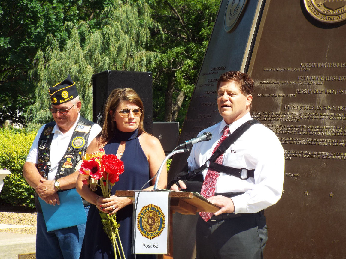 Salina Mayor Karly Ryan was the featured speaker. He was joined by his wife Jody, who brought flowers to leave at the war memorial. The Mayor spoke about the history of Memorial Day, and what it means to he and his family.