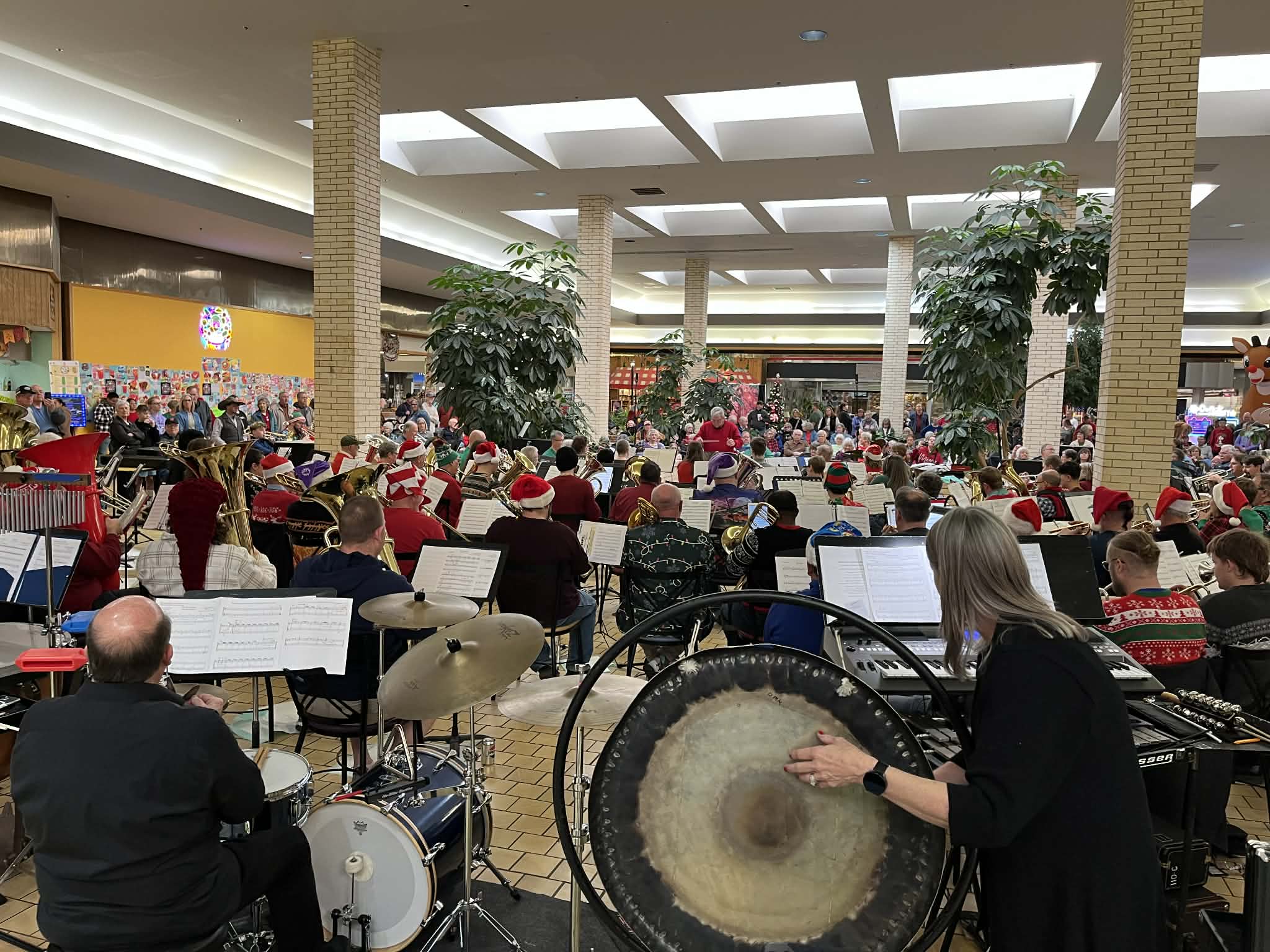 The Salina Area-Wide Christmas Brass Choir, 100 musicians strong, took over the Salina Central Mall on Saturday.