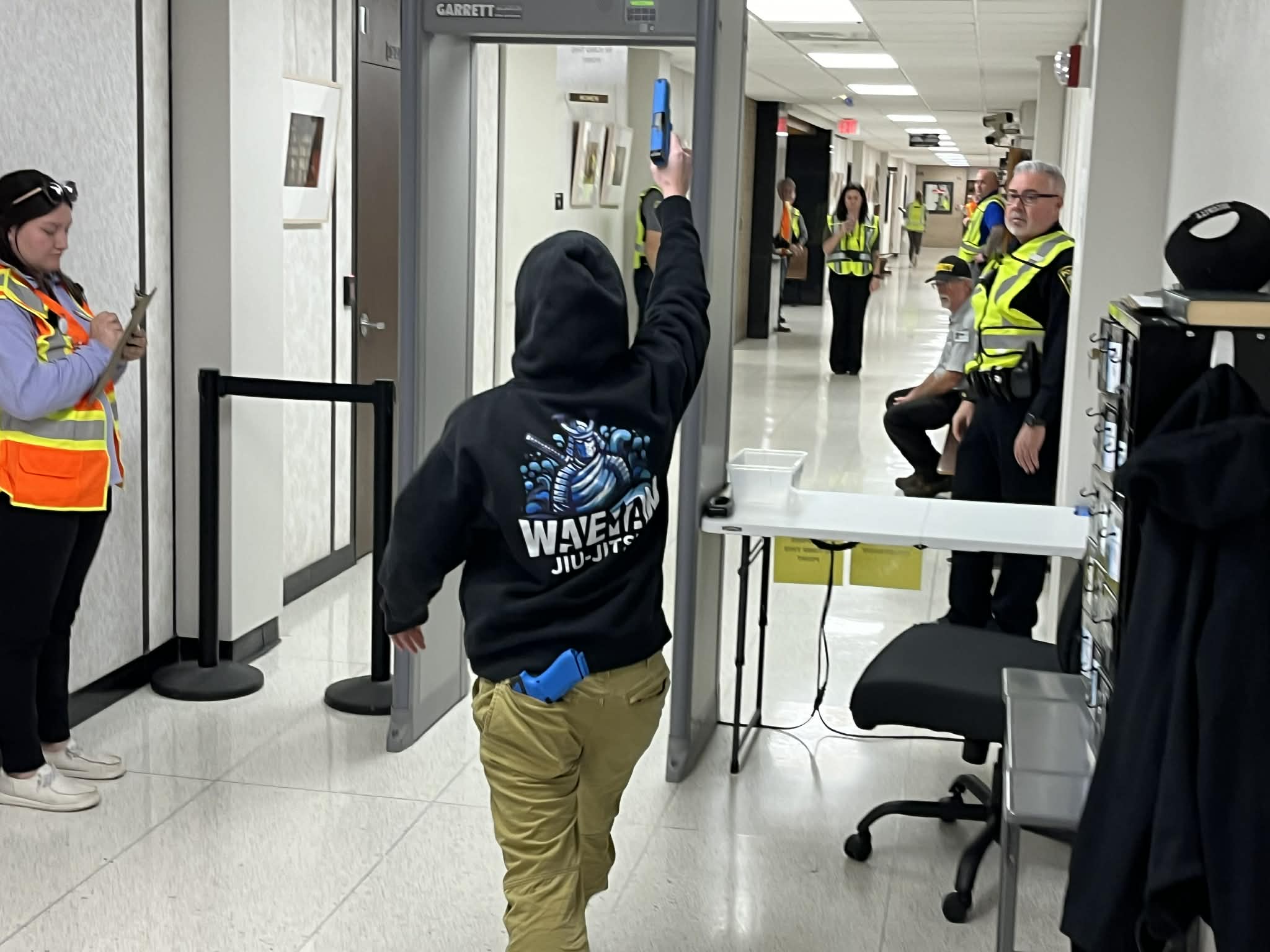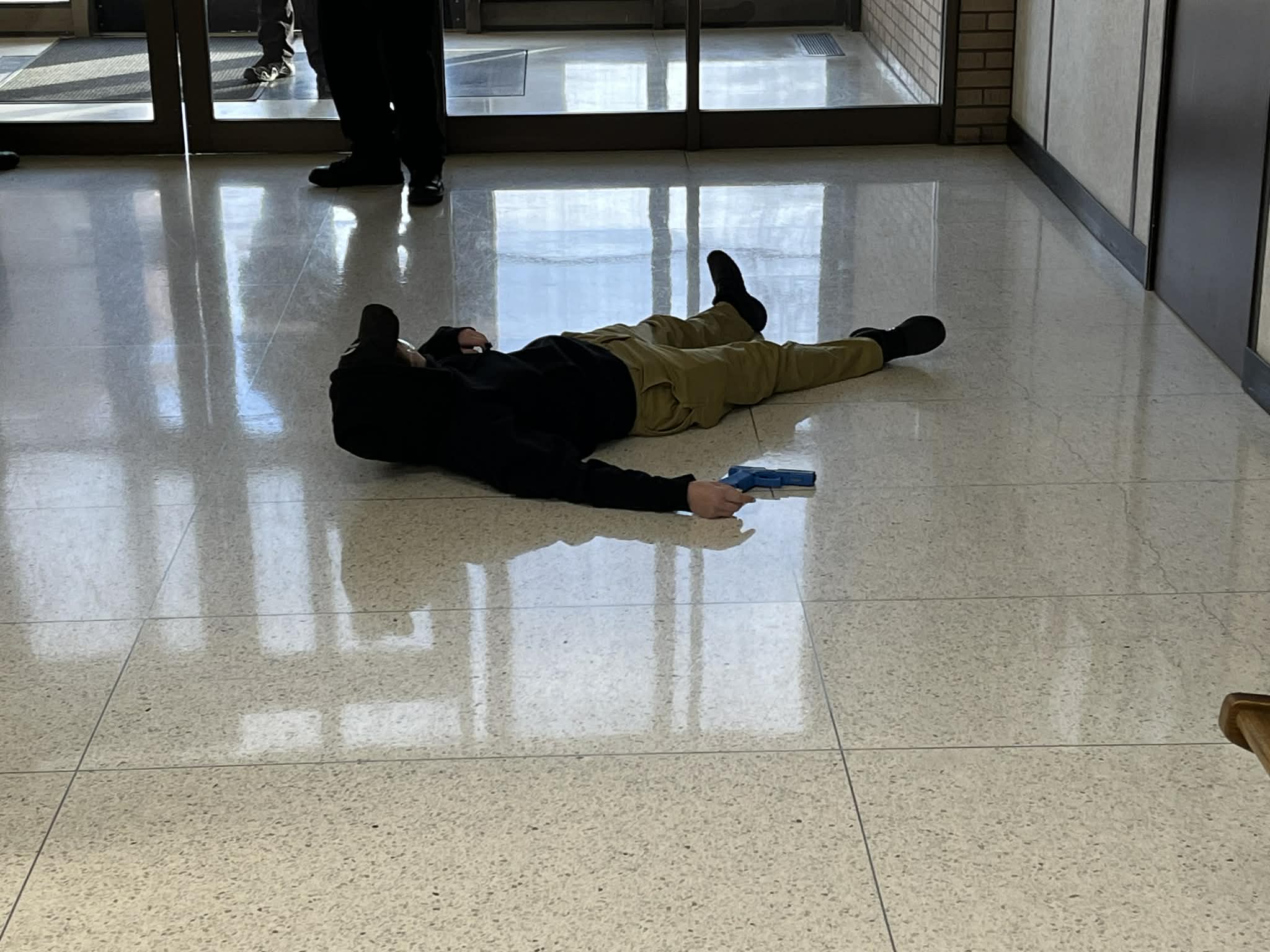The scenario was a person armed with a handgun entering the building, roaming the halls shooting, and looking for any open doors and offices. It played out twice, once on the first floor and second time on the second floor.