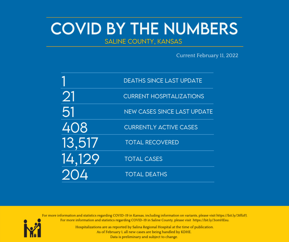 There has been 1 new COVID death in Saline County since Wednesday and 51 new COVID cases.