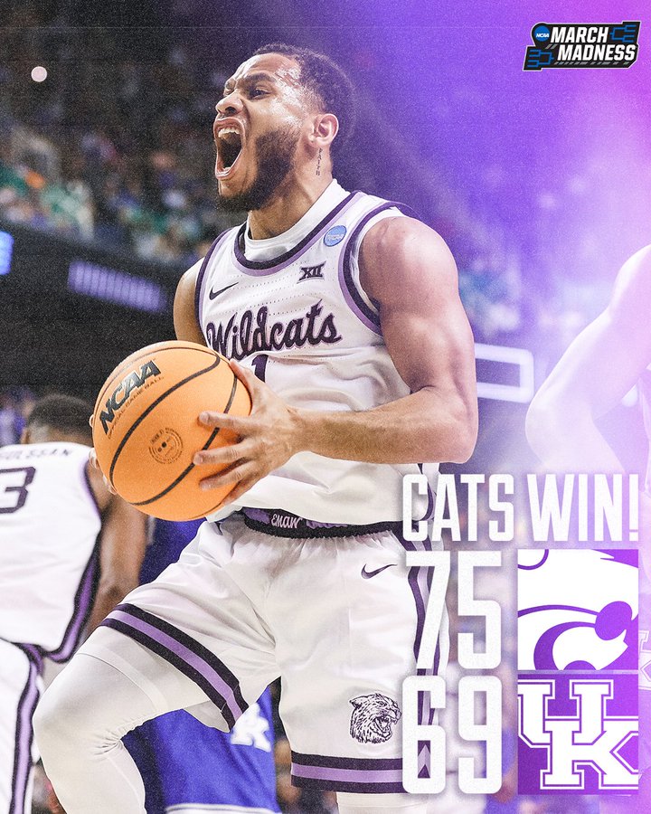 K-State (25-9) advances to the East Regional Semifinals at Madison Square Garden in New York City, where the Wildcats will play No. 7 seed Michigan State (21-12) on Thursday, March 23 at 5:30 p.m., CT on TBS. The Spartans defeated No. 2 seed Marquette, 69-60, also on Sunday.