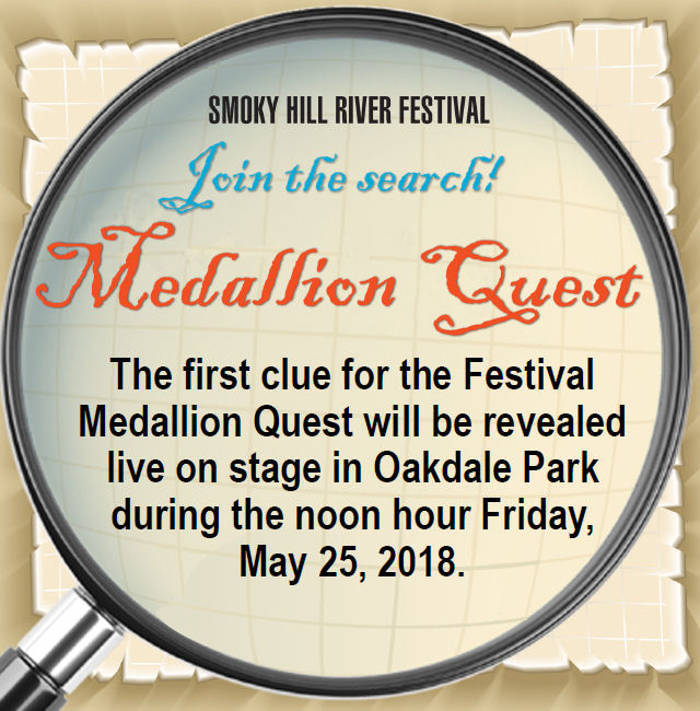 Smoky Hill River Festival Medallion Quest fans are gearing up for this year’s hunt. The 2018 Smoky Hill River Festival Medallion Quest begins on this afternoon. The first clue will announced live in Oakdale Park, and on the radio, during a free concert in Oakdale Park at the Eric Stein Stage.