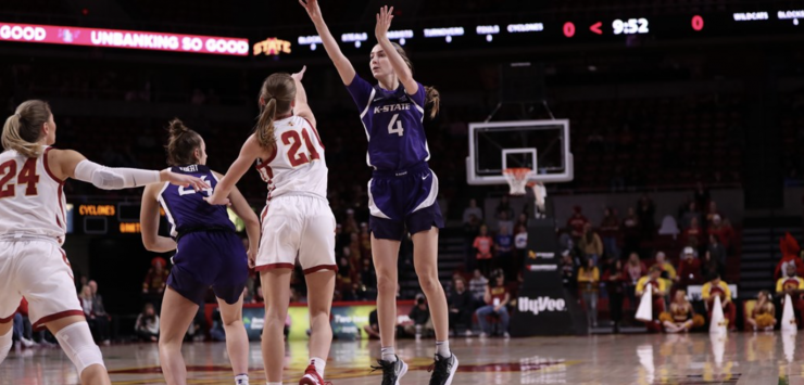 AMES, Iowa – Playing its seventh game this season against an Associated Press top-15 opponent and its fourth on the road, (25/rv) Kansas State fell to (11/10) Iowa State, 70-55, at Hilton Coliseum on Wednesday night.