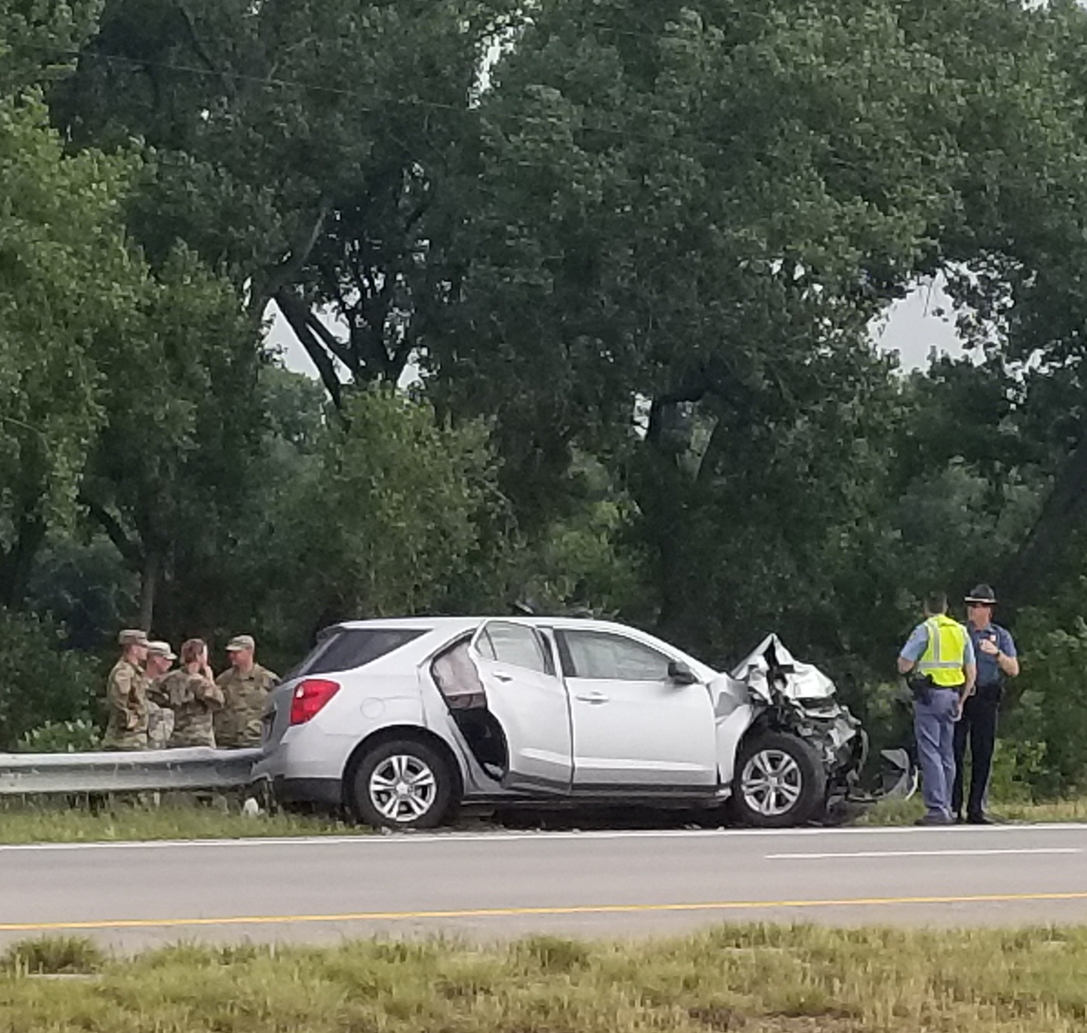 Westendorf and a 6-year-old passenger were both injured, and transported to the hospital in Salina.  A passenger in the military vehicle, 34-year-old Jacob Knight from Oklahoma, was also injured and transported to the hospital in Salina.