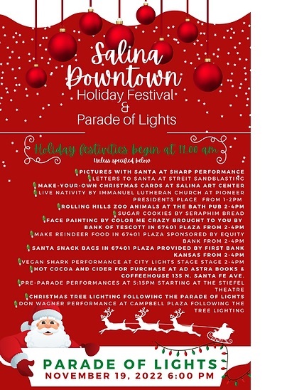 - SANTA SNACK BACS IN 67401 PLAZA PROVIDED BY FIRST BANK KANSAS FROM 2-4PM
