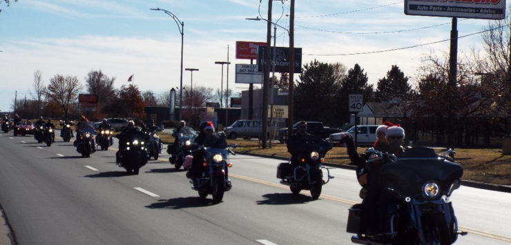 After parading across and around town, the procession stopped at the Redeemer Lutheran Church on Magnolia to drop off toys. They then headed to Harley Davidson Salina for a chili feed.