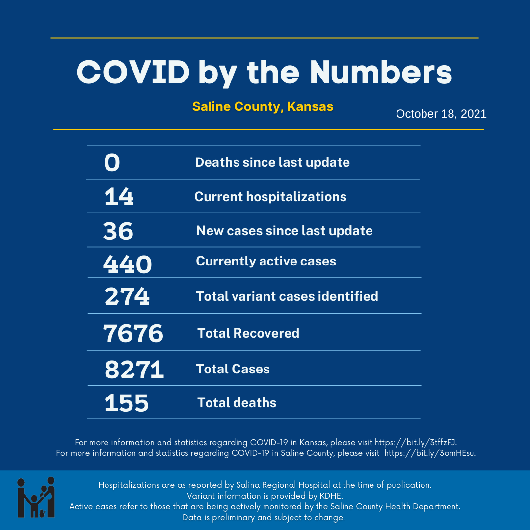 There have been no new COVID deaths in Saline County since Friday and 36 new cases of the virus.