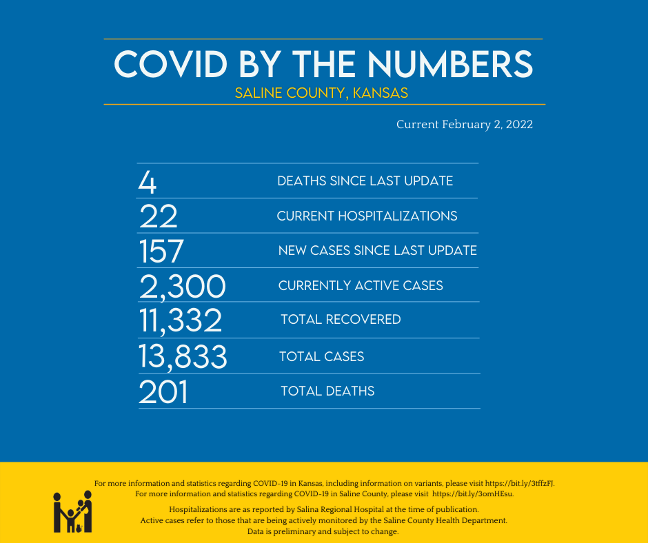There have been 4 new COVID deaths and 157 new COVID cases in Saline County since Monday