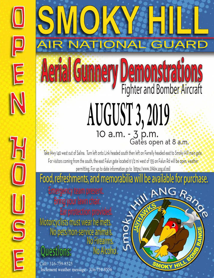 The Smoky Hill Weapons Range is opening its gates to the public for an open house and aerial gunnery demonstration this weekend.