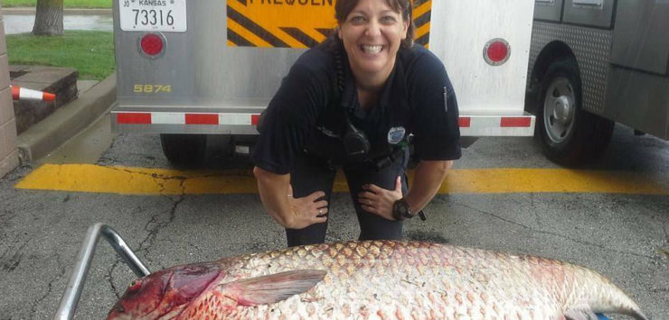 A Kansas animal control officer says she was skeptical when a man called to report a 4-foot-long carp in a drainage ditch.