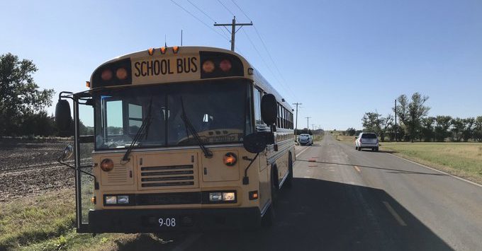 According to the Kansas Highway Patrol, a 2008 Bluebird School Bus was stopped eastboundĀ at 6604 E K-4 Highway dropping a student off.The bus was rear-ended by a a small passenger car, a 2014 Chevrolet Spark.