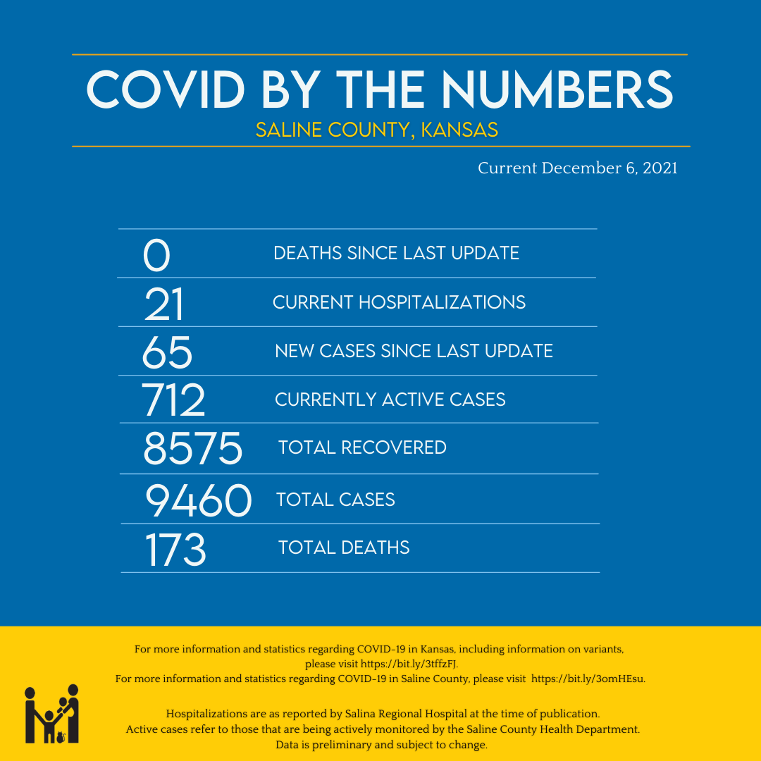 There have been 65 new COVID cases in Saline County since Friday and no new deaths.
