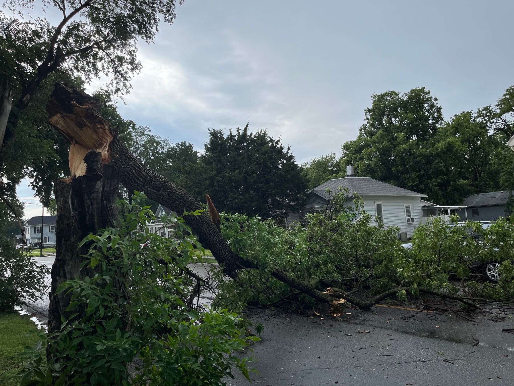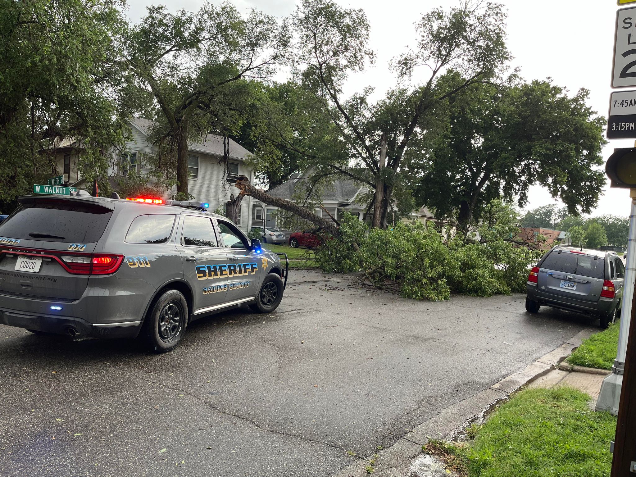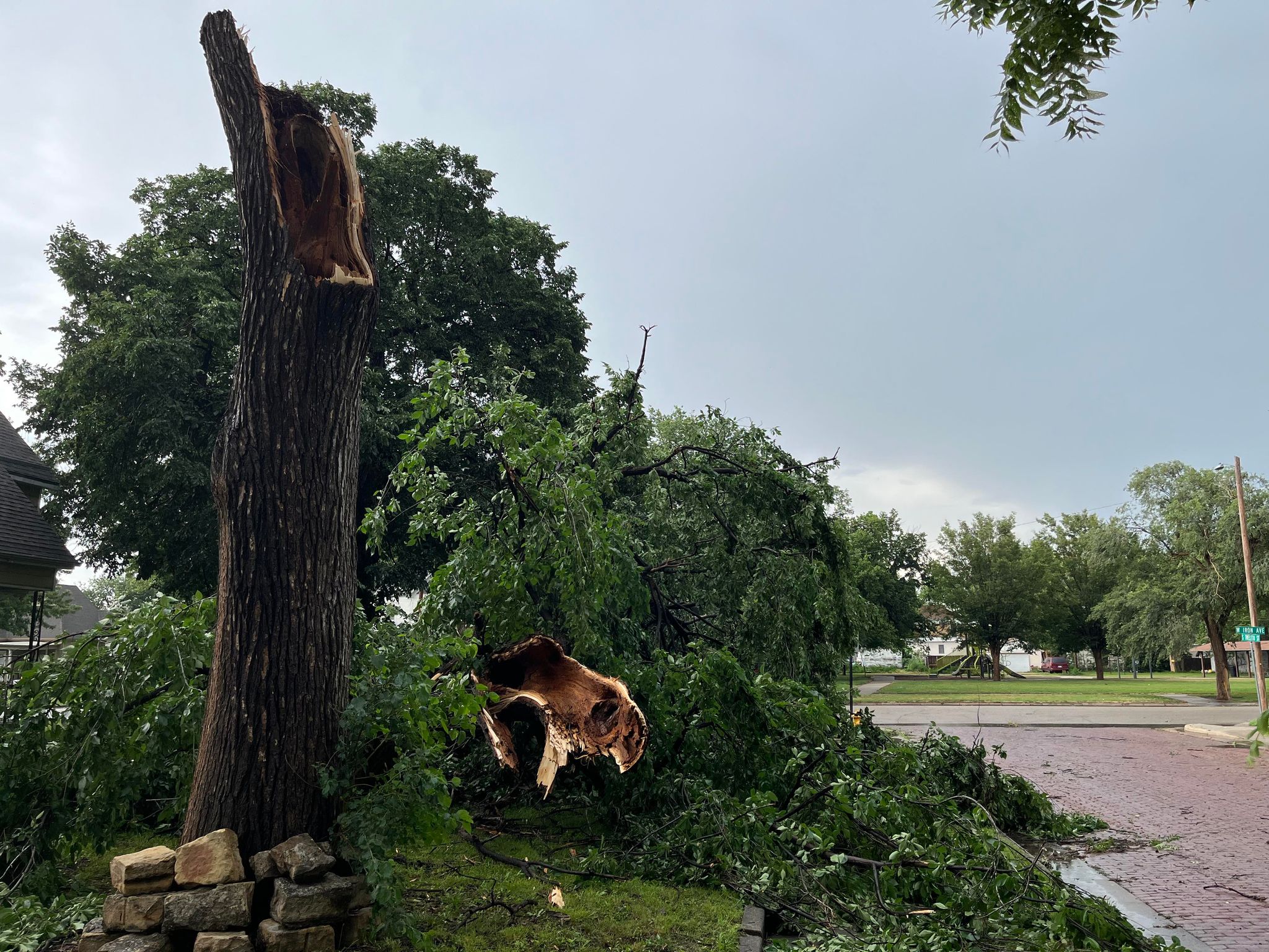 In North Salina, in the area of 12th and Walnut and 12th and Iron, there were numerous large limbs down and at least two large trees.