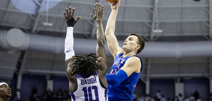 Following a turnover from TCU’s Jakobe Coles, Wilson scored again on a layup to make it 15-9, Kansas, equaling the largest lead of the half for the Jayhawks at six. Kansas led until the 9:36 mark of the half when Francisco Farabello hit a layup to tie the game at 20.