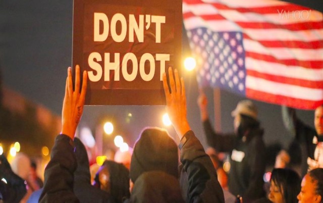 Protests Tuesday spread across the country, and Kansas, with demonstrations in Ferguson, Mo., New York City, Seattle, Los Angeles, and elsewhere shutting down bridges and roads one day after a grand jury's decision not to indict a white police officer in the shooting death of a black 18-year-old.