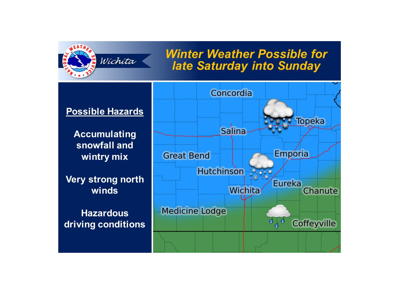 A strong storm system could bring some snow and a rain/snow mix to the region for late Saturday night into Sunday. Strong north winds are also expected.