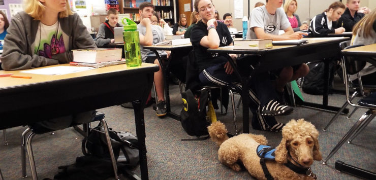 Moore shares Penny with several classes at South, and Penny also hangs out in the commons area. “The kids love her, and she loves them back,” she says. It’s not uncommon for a student who is having a bad day to stop by for a hug, and a little “Penny time”.