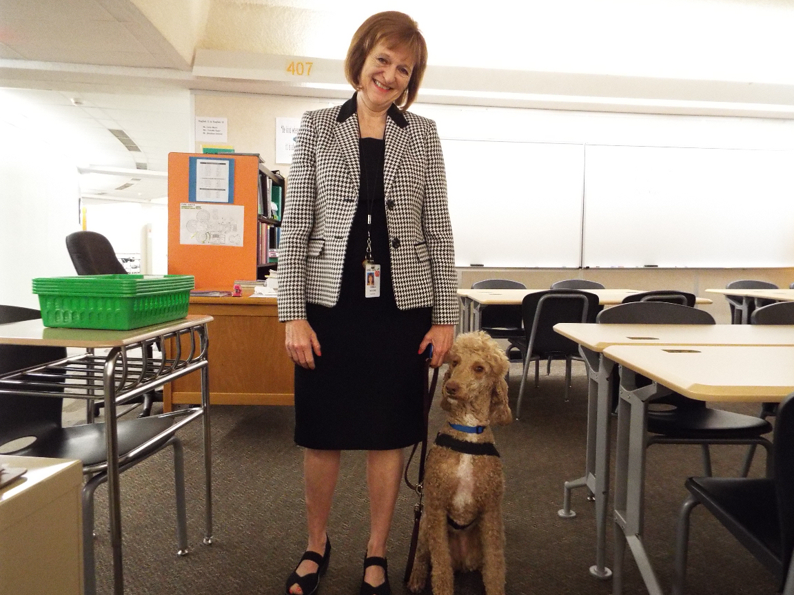 English Teacher Carla Moore is Penny’s “mom”, and takes her everywhere she goes. As a trained therapy dog, Penny is welcome anywhere and everywhere.