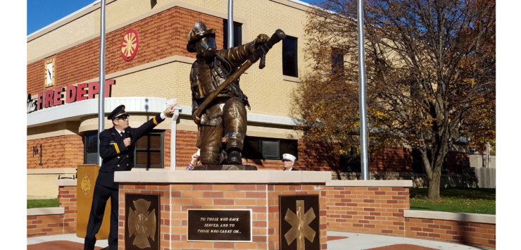 A crowd of about 100 gathered Saturday morning to be a part of the dedication of a new tribute plaza outside Salina Fire Department #1.