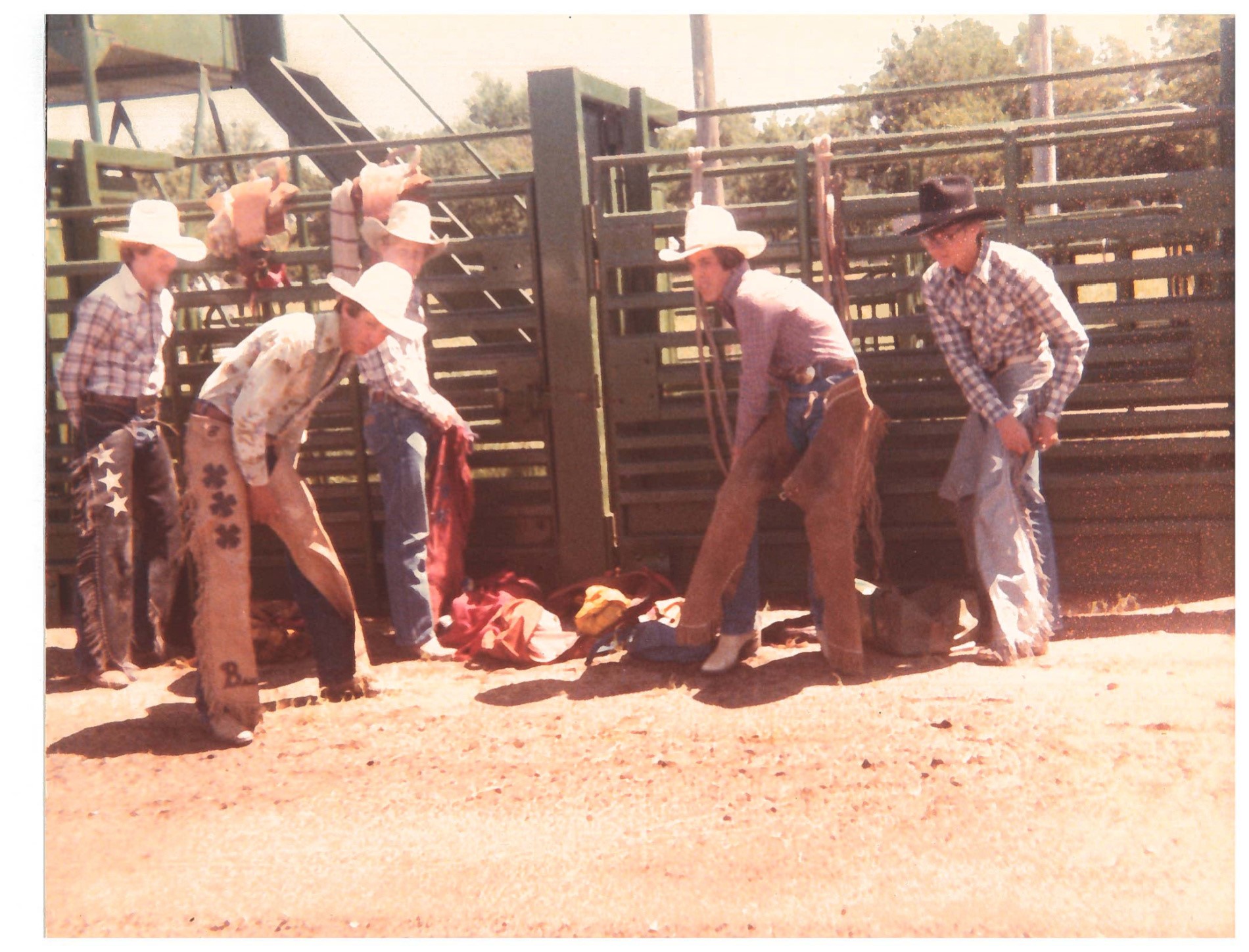 He has a picture of himself and his four buddies, standing in the arena, before they went to the Kansas State High School Finals Rodeo in 1979. McDonald was a bareback rider, saddle bronc rider and bull rider.