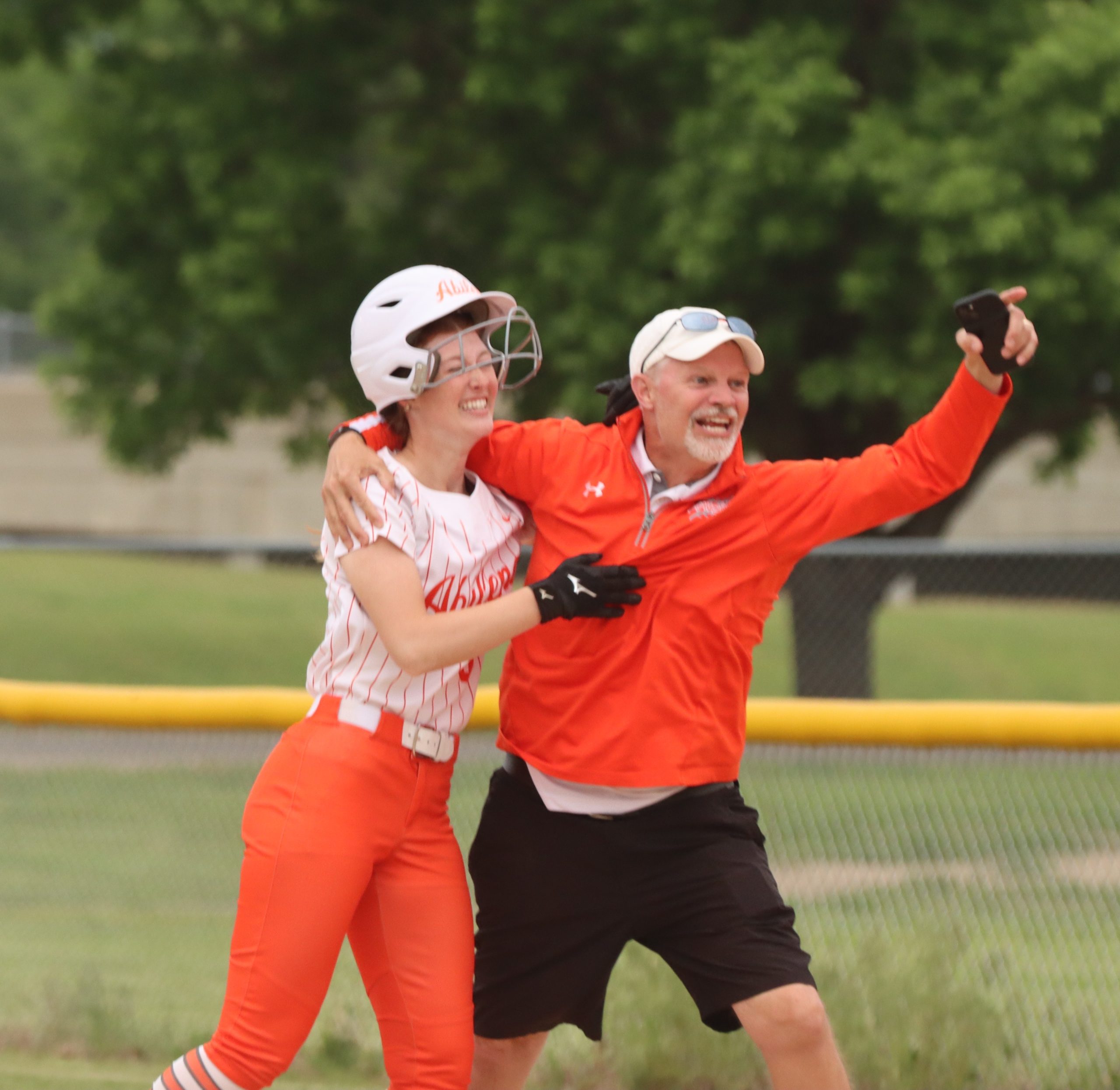 Freshman, Olivia Harold started the second game. Her sister Maddie, entered in the 5th inning. Maddie struck out 5 batters over the the final 3 innings and struck out 4 straight including the first two hitters of the 7th. Nichols then drew a walk followed by a double to right by Keener which then set up Bryson’s heroics.