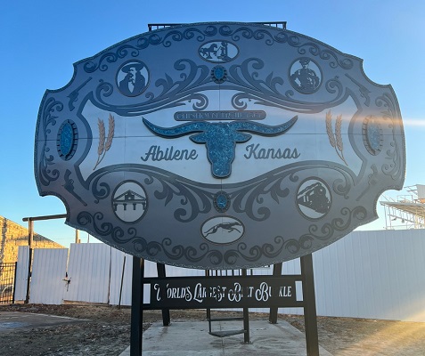 According to the Abilene Convention and Visitors Bureau, the Dickinson County community is a finalist in TravelAwaits’ Best Of Travel Awards in the Favorite U.S. Small Town and Favorite Roadside Attraction category for its new World’s Largest Belt Buckle.