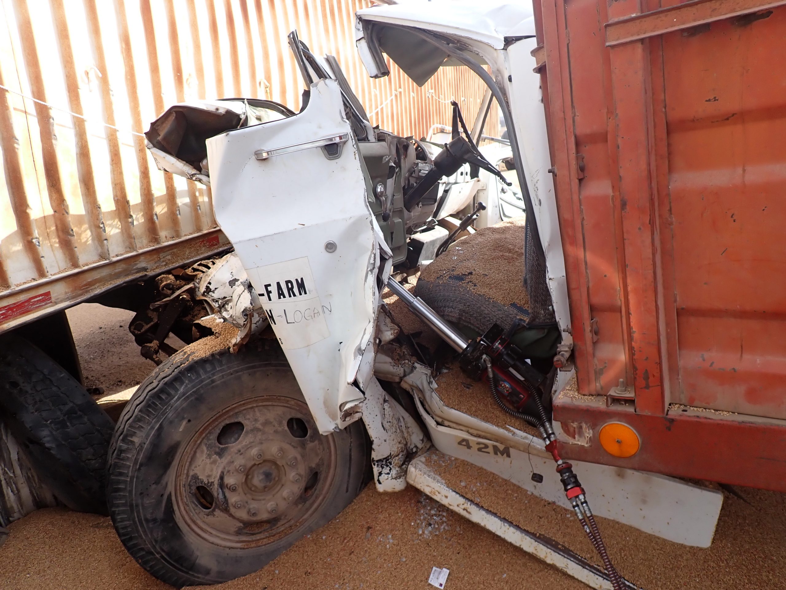 Logan Ade, 24, rural Gypsum, was driving a 1976 GMC 6000 truck, that was loaded with seed wheat traveling east on Mentor. His vehicle ran in to the side of Jensen’s semi trailer.