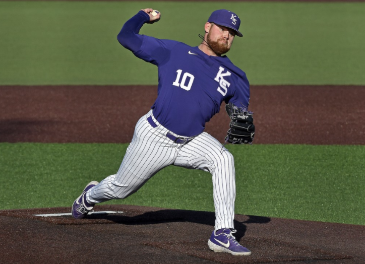 MANHATTAN, Kan. – K-State starter Blake Adams, along with reliever Blake Corsentino, limited No. 7 Texas to its lowest hit total of the season, as the Wildcats rolled to an 8-1 victory in clinching the weekend series Friday night at Tointon Family Stadium.