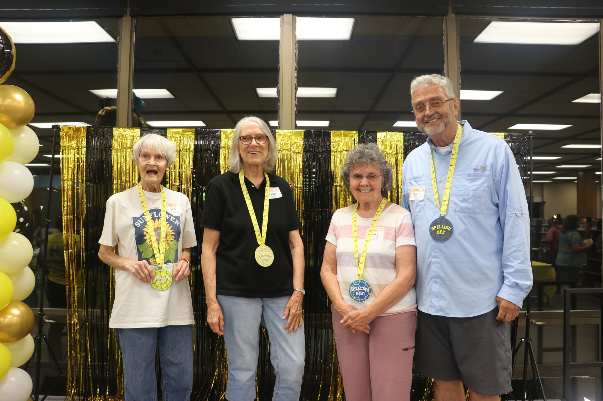 Ten teams of four faced off in a bracket-style tournament that proved spelling isn’t just for kids. Each player had to take the mic every round — no phones, no writing, and no spellcheck — just teamwork, guts, and a few strategic twists. Before the showdown, teams could buy limited-use “advantage passes” for a do-over or a new word, and any team following a misspelled word could steal it on the spot.
