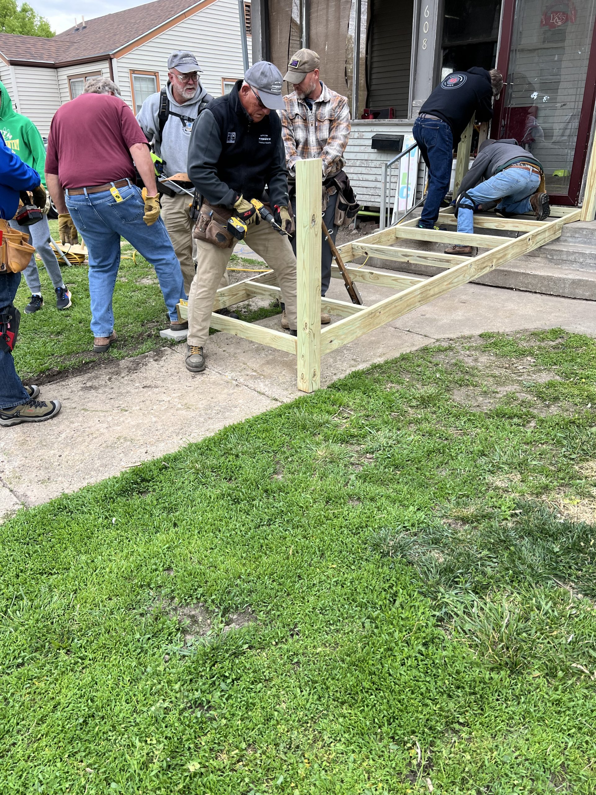 According to Cram, AMBUCS installs around 70-80 ramps per year. There was full crowd of 18 men who put together the 700th ramp on Saturday. No matter the weather, these men get it done.