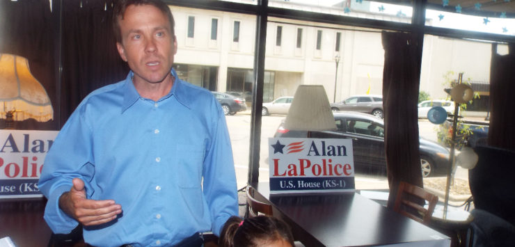 Incumbent Tim Huelskamp and challenger Roger Marshall are currently involved in a heated Republican Primary, which will conclude on Tuesday in the primary election. LaPolice previously ran against Huelskamp as a Republican, receiving 45 percent of the vote in the Republican primary in 2014.