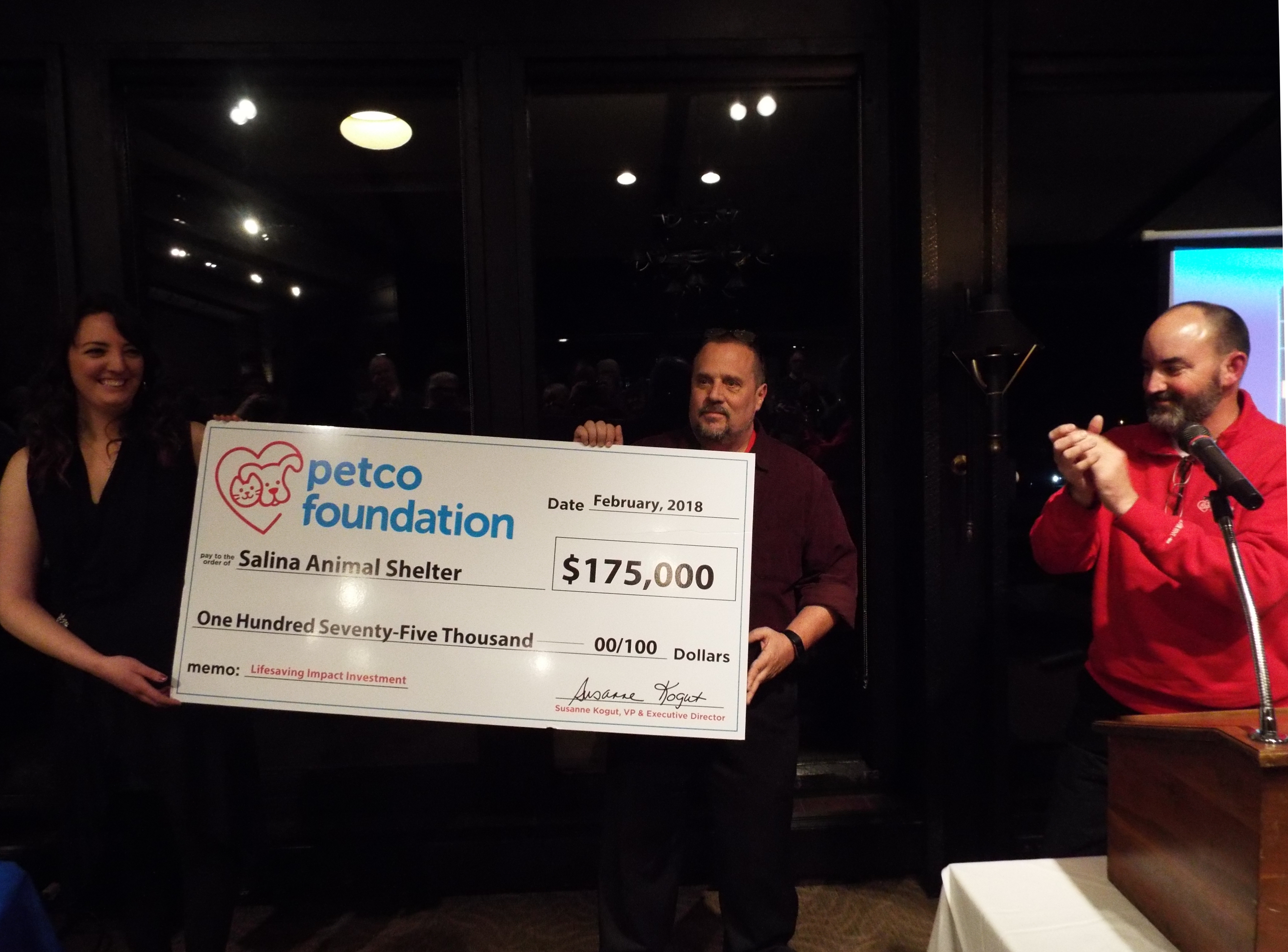 With last week’s $175,000 donation during a Friends of the Salina Animal Shelter fund raising event, the Petco Foundation has now contributed $350,000 to the Salina Animal Shelter.