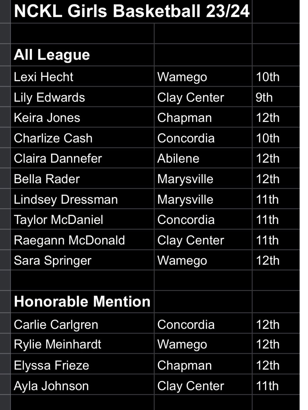 NORTH CENTRAL KANSAS LEAGUE – BOYS & GIRLS