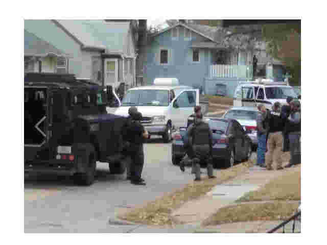 Salina Swat and the Drug Task Force served three search warrants on the 400 block of Baker yesterday morning. Four individuals were arrested.