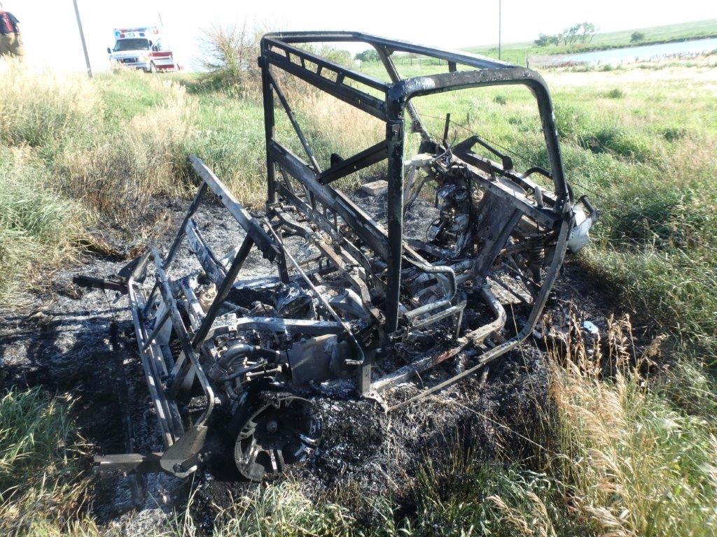 Deputies were sent to 11513 S. Soderberg Road after a 2014 Polaris Ranger was found smoldering in a ditch on Saturday morning around 8am.