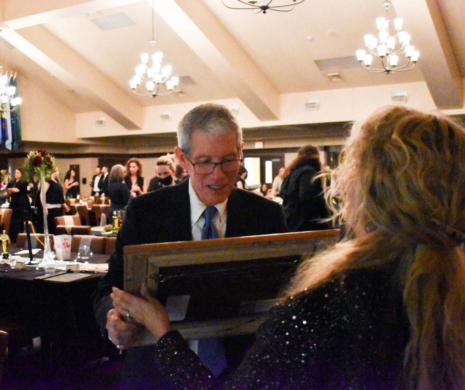 Highlights from the evening included recognizing Gary Chrisbens, Art Center Projectionist, who is celebrating 70 years as a projectionist in Salina. Gary spent most of his career at long-closed downtown Salina theaters like the Vogue and Fox (now the Stiefel Theatre for the Performing Arts). He also worked at the 81 Drive-In on Salina’s south side for 17 years, where he became manager at age 18.