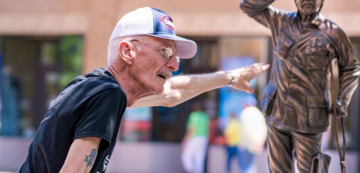 A bronze statue of a disabled veteran saluting the flag – took a Salina man back to Southeast Asia on Saturday.
