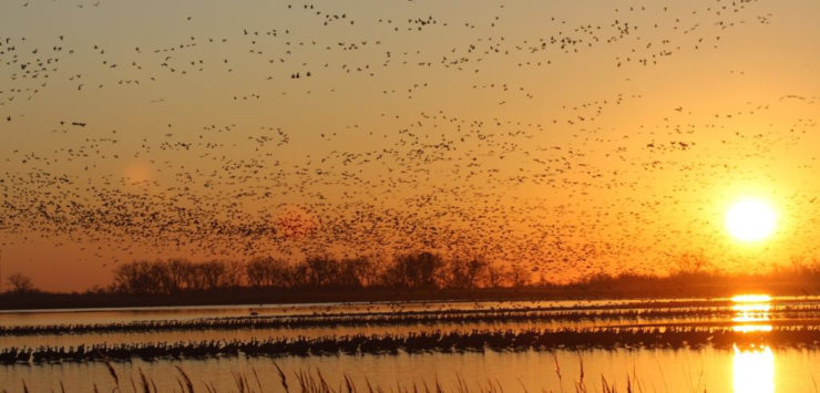 “We picked up about 30 dead geese on Monday, December 14,” said Cheyenne Bottoms Wildlife Area manager Karl Grover. “Those birds had died between last Friday and Monday, so we’re seeing about 10 dead birds a day. We estimate that the Bottoms is holding between 75,000 and 150,000 geese, half of which are snows, and about 10,000 ducks.”