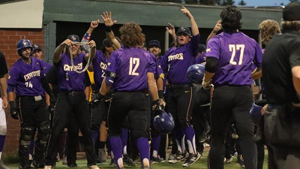 Josh Sandoval (SR/Glendale, Ariz.) singled to lead off the inning and Diego Fisher (JR/Hollister, Calif.) followed with a RBI triple. William Dryburgh (SR/St. Joseph, Mo.) drove in the go-ahead run with a sacrifice fly to make it 3-2 Coyotes.