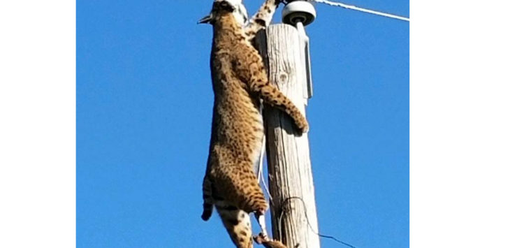The Wichita Eagle reports that a crew from Wheatland Electric found the bobcat atop a 35-foot utility pole on Tuesday near Lakin. The animal came into contact with a pair of electrified lines and died immediately.