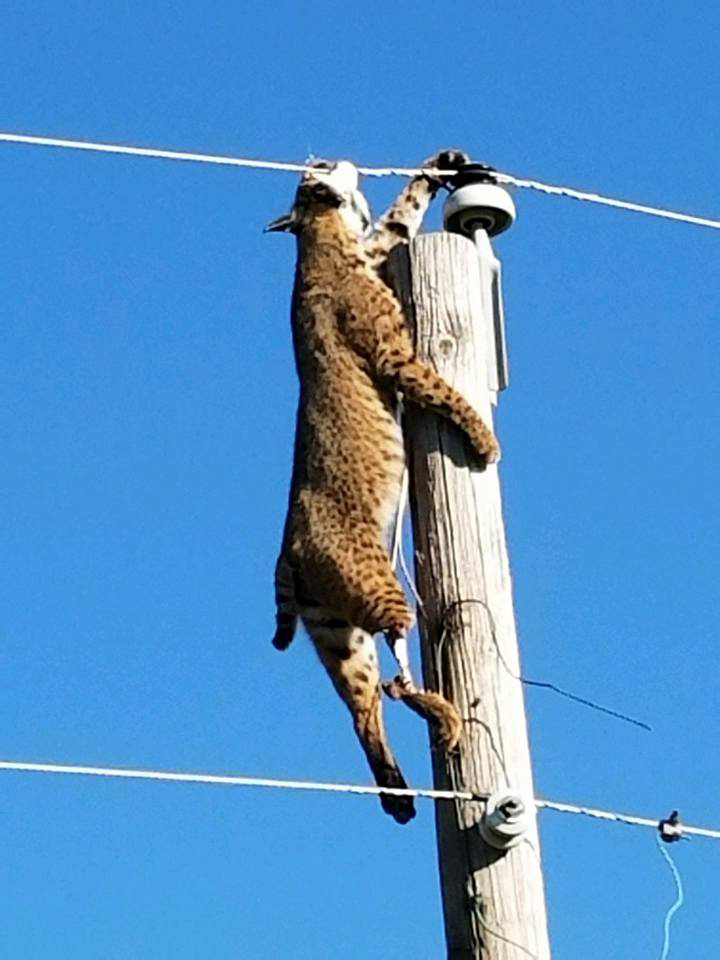 The line crew had used a bucket truck to take the dead bobcat and evaluate the electrical equipment for any further damage.